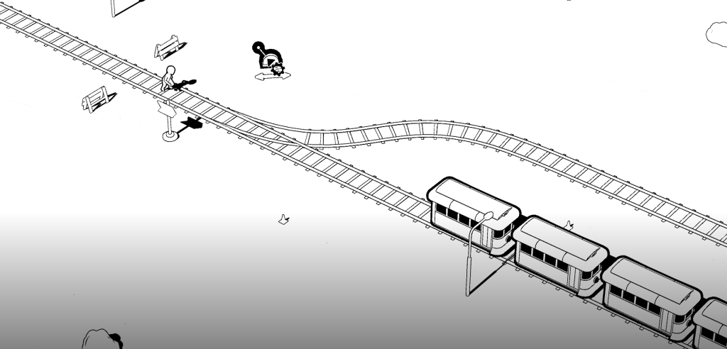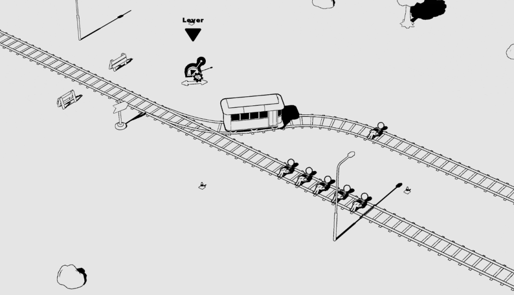 Most of you have probably heard about ‘the trolley problem’ before. In case you haven’t though, it’s essentially a thought experiment that asks ‘if a trolley (train/tram) is heading down the tracks towards 5 people, but you are at a switching station and can divert the trolley to another track where it will instead run over 1 person, should/would you do it?’ I’m probably explaining that terribly, but here’s the exact scenario laid out by the game itself.